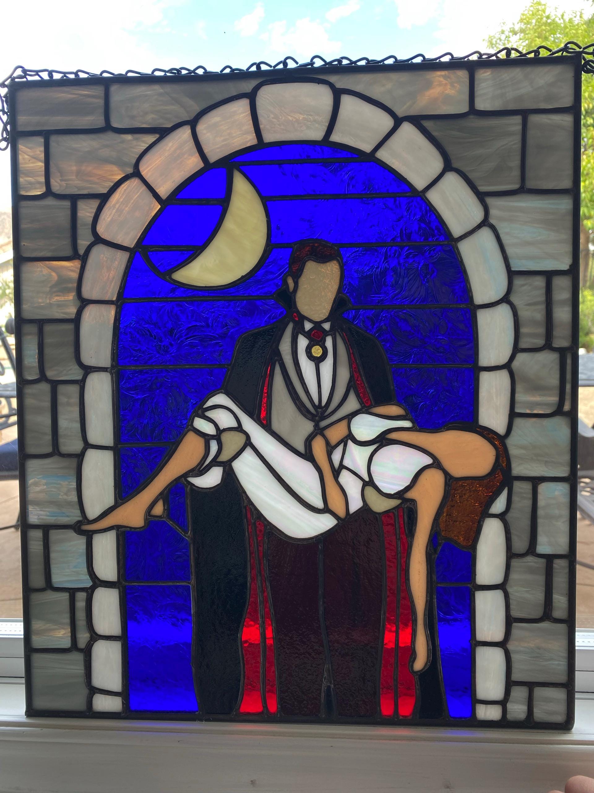 A fun and unique pattern! It did feel a bit incomplete to me so I added a stone archway. Also, the lines were quite thick and it caused a lot of gaps between the pieces, so if you’re like me and use a Cricut to cut patterns out, it’s best to not cut/grind your glass completely flush to the edge of the pattern piece.